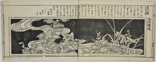 沢潟又沢桔梗(おもだか また さわききやう) The British Museum所蔵 おもだかのもやうまたさはぎきやうのもやういづればかりなりとも一所にてもおもしろしほそくなかきは つくも がま くろくはいのるひなりあいしらいてよし水はおもたきはあしし所々すかし…
